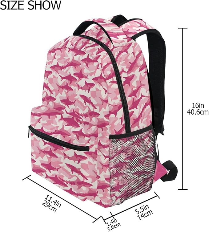 Pink Sharks Backpack for School Student Laptop Travel School Bag for Boys Girls Daypack