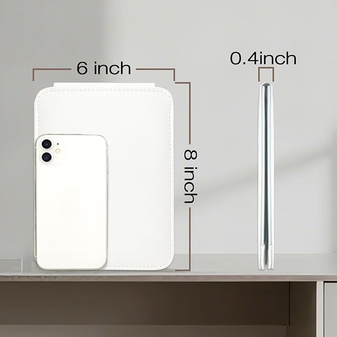 - Ideal Size - This 8"x6" white desk mirror is only 0.4" thick when folded, making it a perfect size for easy travel and camping