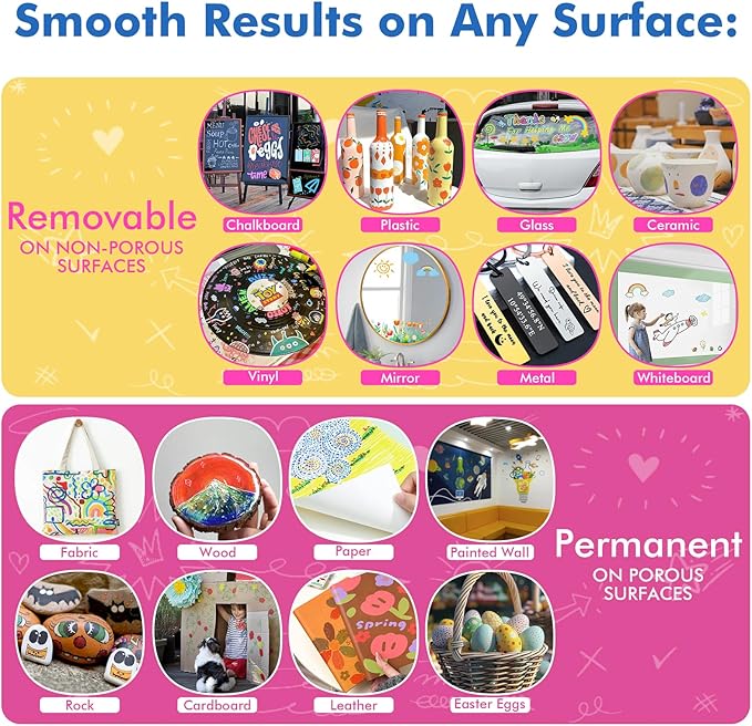- 18 Vibrant Neon Colors:Car window markers use upgraded 3rd-gen ink for brighter,more vibrant fluorescent colors.Available in a variety of shades bright,metallic and vintage.All of them are rich in pigments,long-lasting and fade resistant.