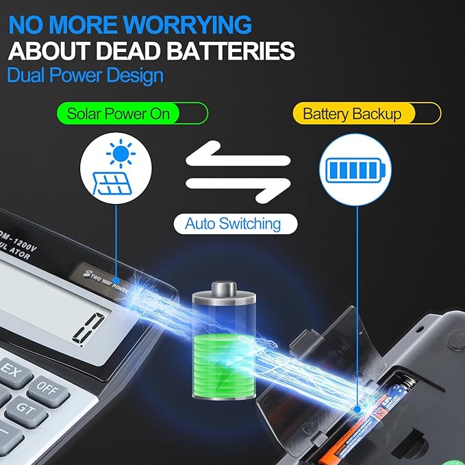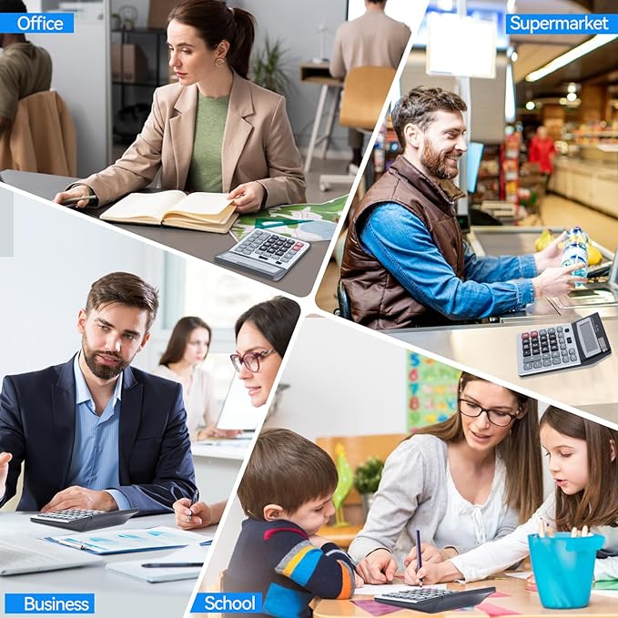 Calculator, 12-Digit Large LCD Display Desktop Calculators, Big Button with Dual Power (Solar & Battery), Standard Function for Office/School/Home Use