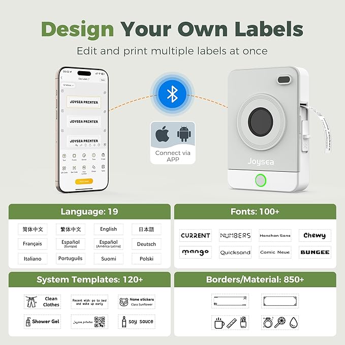 - Easy APP Customization: Experience seamless, fun label creation with Joysea label maker via the "XEasy Label" app on iOS and Android (Bluetooth compatible). Access over 100 fonts, 130 frames, and 700+ icons for effortless customization—simplifying design while enhancing user enjoyment anytime.