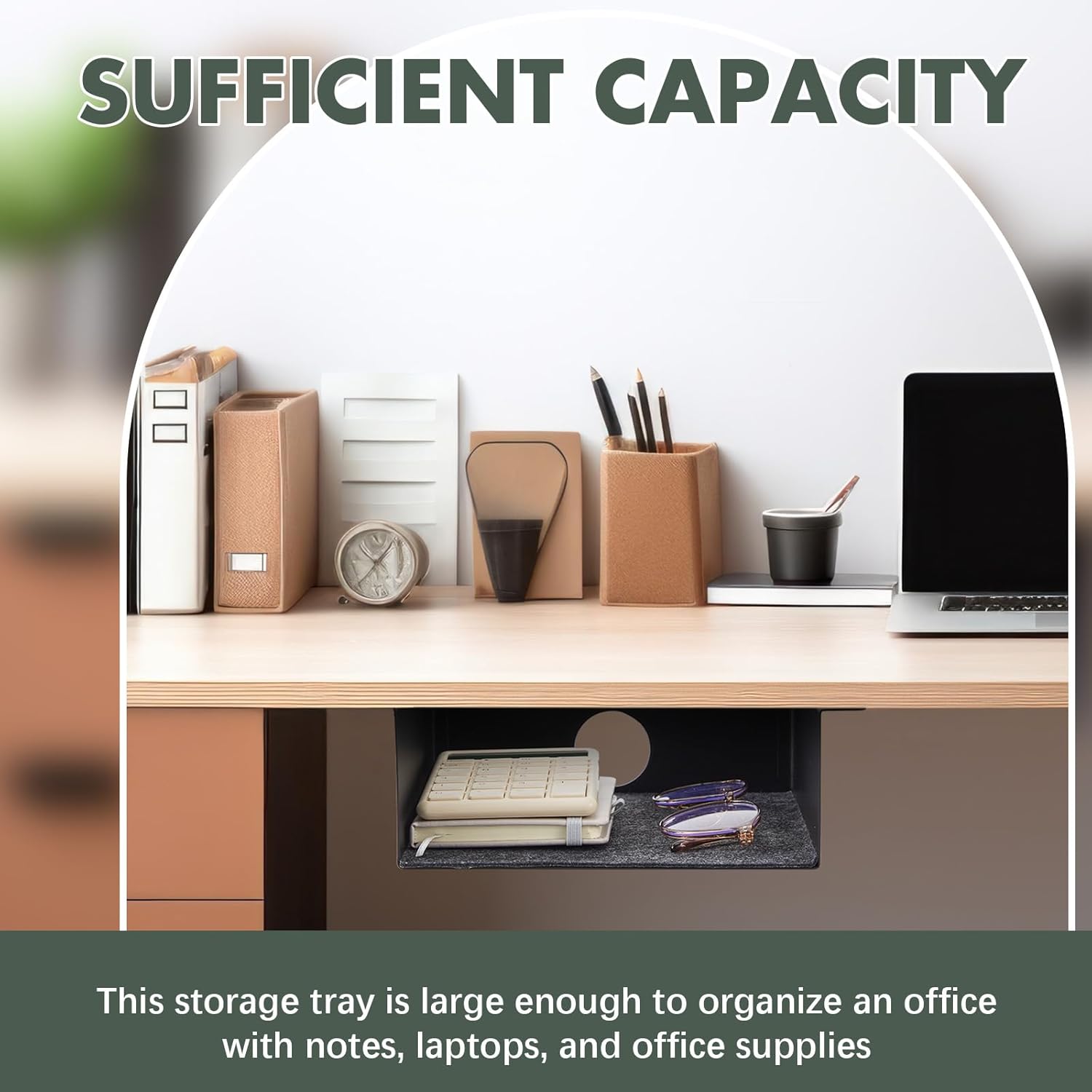 - Spacious Organization Convenience: our under-desk drawers boast a large internal storage capacity that accommodates your office or stationery supplies with ease; The design also incorporates a round hole at the back to pass the wires through, assisting in keeping your workspace clutter-free