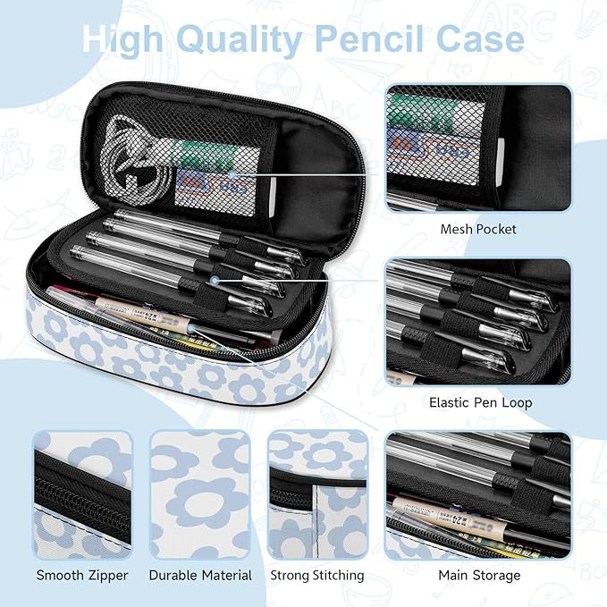 - High Quality: The pencil box is made of durable oxford cloth (polyester) fabric, easy to wash and clean; Outstanding protection against scratches, and abrasions. Smooth & durable dual zippers, easy to open and close. The light weight makes this pencil box easy to carry, perfect for daily use in backpacks or desks