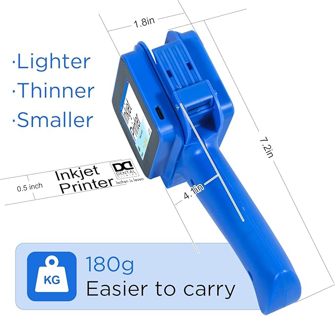 - 42 ml Quick-Drying Ink Cartridge: this handheld printer comes with a black quick-drying and water-resistant ink that dries in 2-5 seconds; 0.5 Inch Nozzle, adjustable print heights from 0.08 inch to 0.5 inch (2mm-12.7mm)