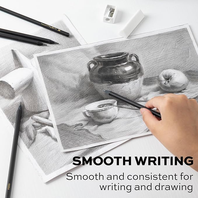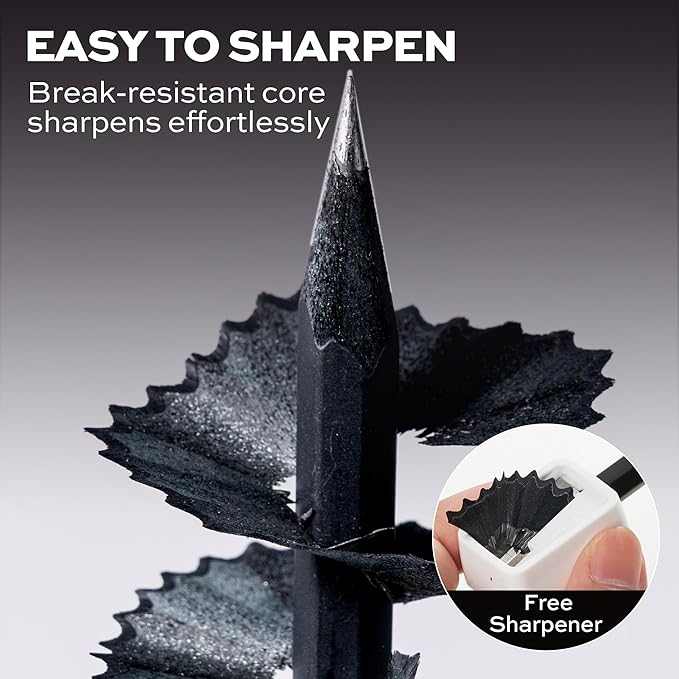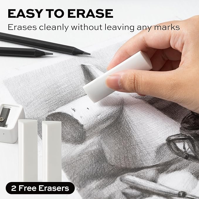 - 【Safe & Easy to Erase】These pencils come with two durable erasers that ensure smooth erasing with no residue or smudging. Plus, they’re easy to sharpen with the included sharpener, ensuring your pencils stay in great shape for all your creative projects,CPC-certified for safety, these sketching pencils for drawing are a trusted choice for classrooms, studios, and everyday creative projects