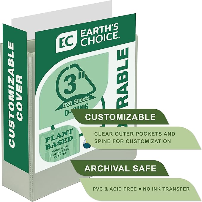 - Sustainable Solution: Our binder is made from plant-based materials, including a polypropylene cover derived from 25% Brazilian sugarcane and 100% recycled fiber boards. Brazilian sugarcane is chosen for its renewable nature and minimal impact on food crops, while actively capturing CO2 from the atmosphere