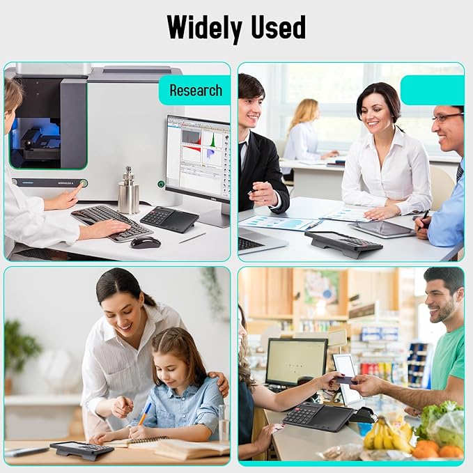 - 【Comprehensive Office Scenario Coverage: Balancing Portability & Practicality】Business & Office Use:Ideal for financial reimbursement and real-time recording of data and decision points during meetings, eliminating the hassle of switching between calculators and notebooks.Portable Design:With a slim thickness of only 1.6 cm, the foldable stand allows easy storage in briefcases, making it perfect for carrying during business trips or negotiations.Durable Materials:The body is made of wear-resistant ABS engineering plastic, and the writing pad surface is scratch-resistant, ensuring long-term office use without easy damage. It adapts to various office environments.