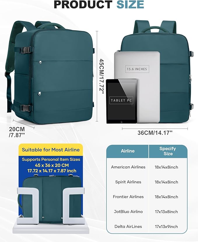- Travel-Friendly Design Meets Airline Standards: Sized at 14.2" x 7.8" x 17.7" (36cm x 20cm x 45cm), this backpack with vacuum compression complies with most airline carry-on rules and opens 180° for quick airport security checks, ensuring a smooth travel experience as your go-to vacuum compression backpack for travel