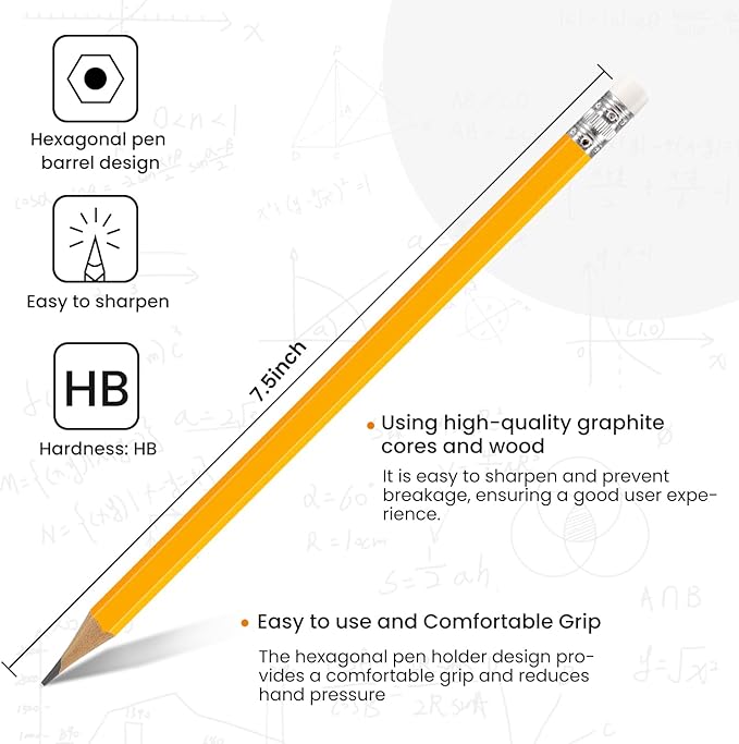 Pencils Pre-Sharpened #2 Pencil with Erasers, Yellow,7.5in 1200 Pack