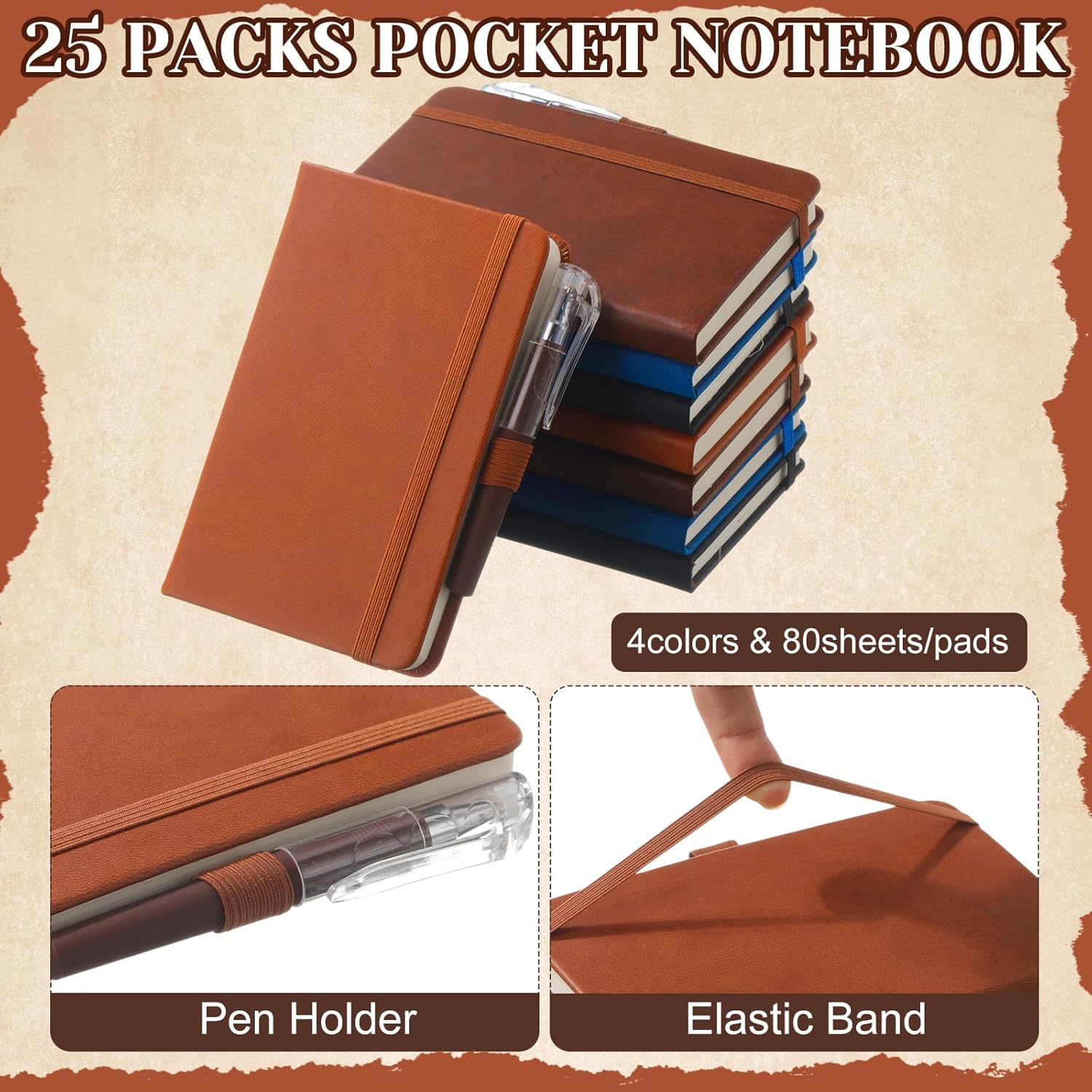 - Sufficient Quantity: you will receive 25 hardcover pocket notebook(dark brown/light brown/black 6 each and 7 dark blue ) and 25 mini pens(6 black, 7 navy blue, 12 brown), enough for your personal needs or plenty to share with others; Each mini notebook is crafted with a pen holder, making it convenient and efficient to store your pen within easy reach at all times, you can use it as soon as you receive it