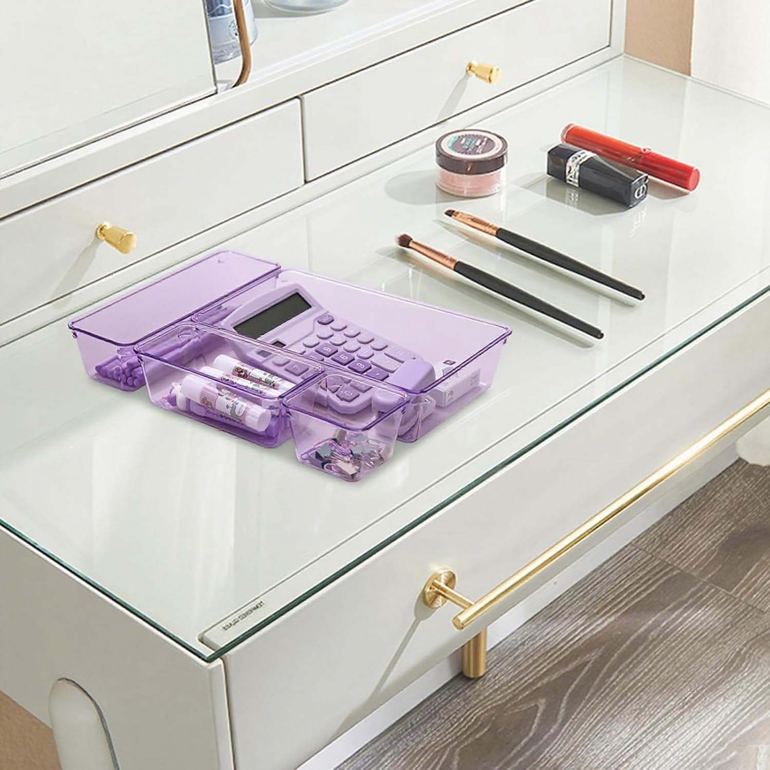 Kitchen Desk Drawer Organizers Storage for Office, Small Acrylic Vanity Trays Makeup Organizer for Drawer Bathroom Plastic Make up Organizers 25 Pcs Clear Purple