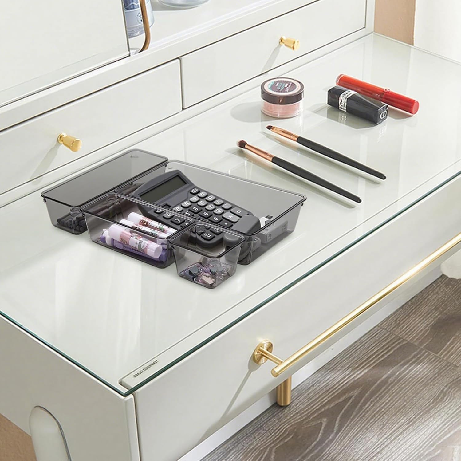 Kitchen Desk Drawer Organizers Storage for Office, Small Acrylic Vanity Trays Makeup Organizer for Drawer Bathroom Plastic Make up Organizers 25 Pcs Clear Black