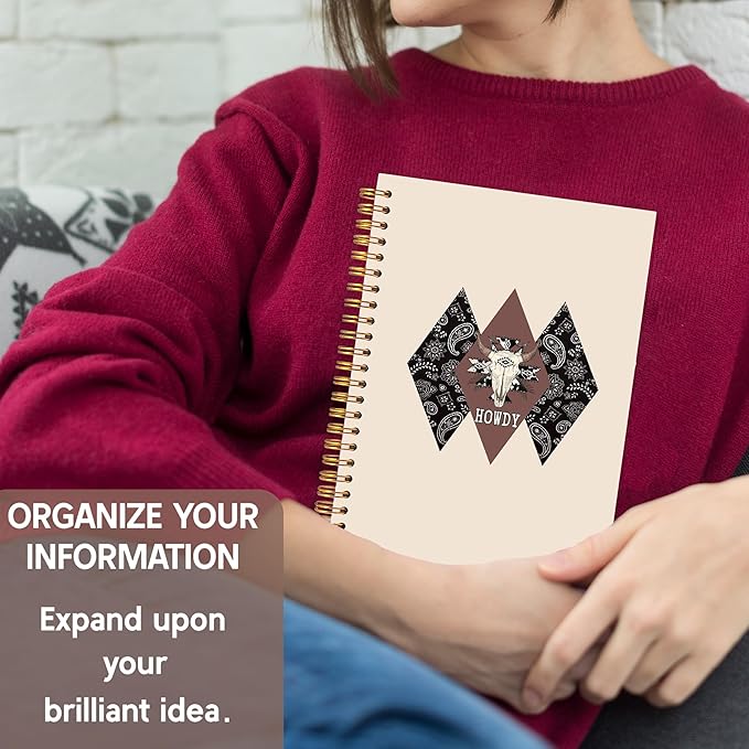 KAOWT Boho Western Howdy Notebook Journal, Rustic Western Cow Skull Notebooks for Note Taking, Country Southwestern Tribal Journal, Cowboy Cowgirl Gifts Hardcover Spiral Notebook 5.5x8.3in