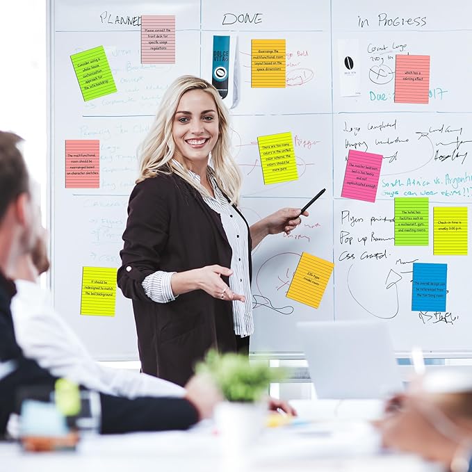 (15 Pads) Lined Sticky Notes 4x6 in Post, 7 Bright Colors with Lines Self-Stick Note Pad it, Strong Adhesive, Big Rectangular Sticky Pads for Office, Home, School, Meeting
