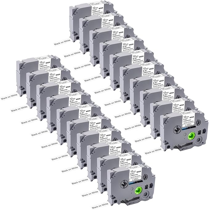 20PK Ptouch Tape 12mm 0.47 Laminated White, Fade Resistant& Waterproof, School/Home/Office/Business Use, Outdoor Label Refills for PT-D220 D210 H110 D200 D400 1280 D610BT