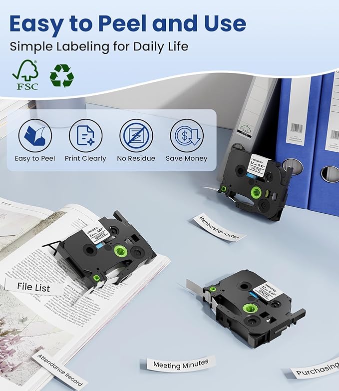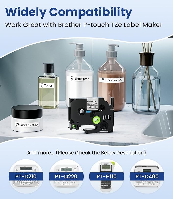 - 【Widely Application】TZe tz tape 12mm 0.47 laminated white tape are widely use: Item Differentiation, Date Labeling, Operation Tips, Price Labeling, Personal Items Labeling, DIY Blessing Language and more.-Scene: Home, Office, School, Hospital, Government, Hotel, Restaurant, Factory, Bank, Laboratory, Warehouse, Farm, Repair Shop, Stores, Supermarkets and more