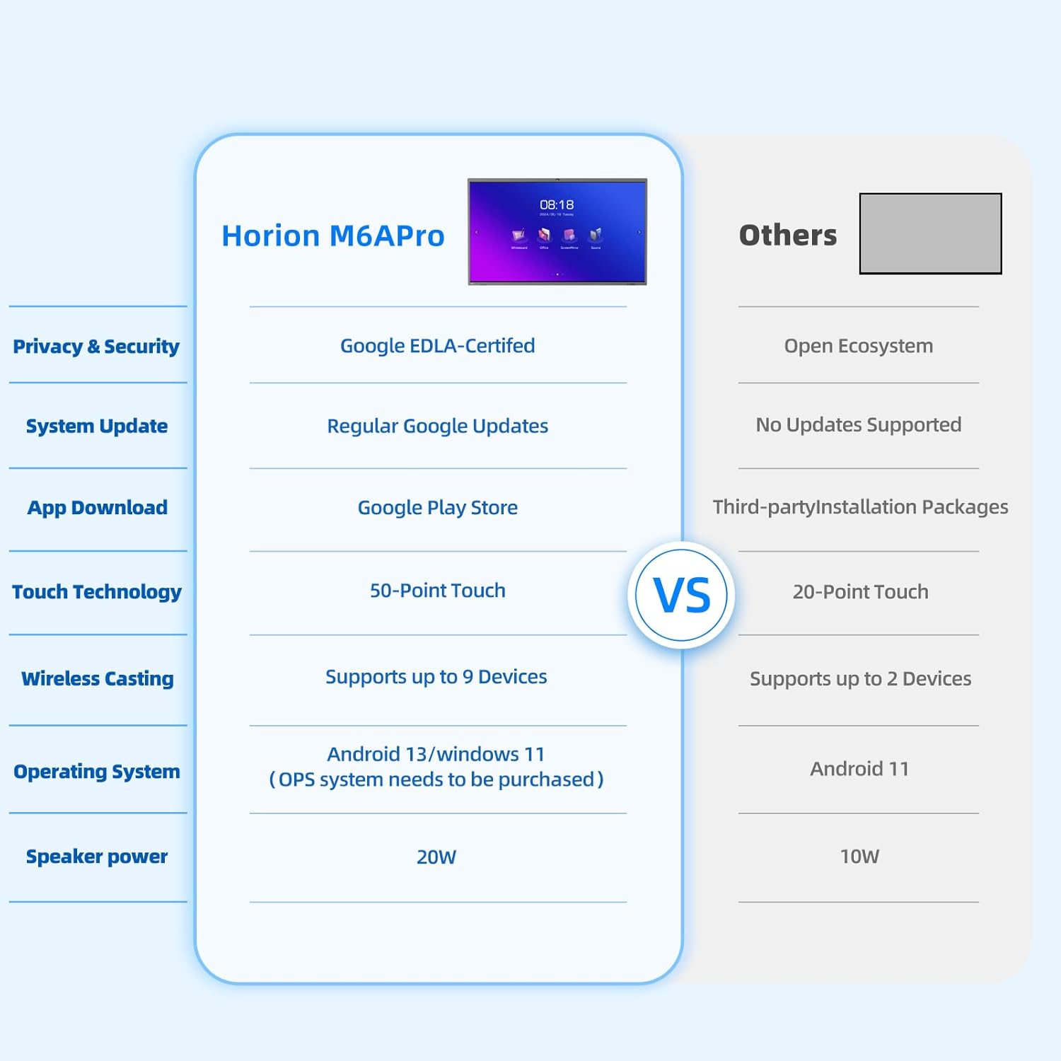 HORION Smart Board, 75" UHD Digital Whiteboard with 48MP Camera, Google EDLA-Certified Android 13, Electronic All-in-One Computer for Office and Classroom (Board & Wall Mount Only)
